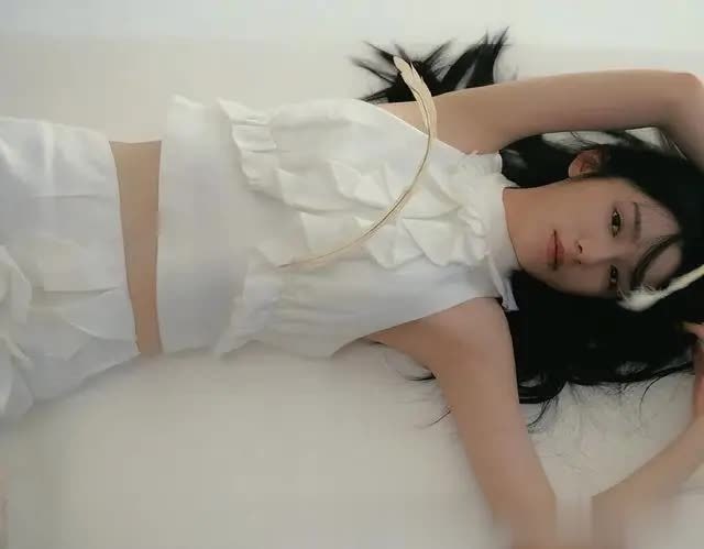 眼妆和唇妆更是把 “克制” 做到了极致。眼妆没有夸张的眼线和亮片,只在眼尾用极淡的大地色做了细微加深,睫毛刷得根根分明,悄悄放大了双眼,让眼神更有穿透力,却又完全不抢戏;唇妆选的是低饱和的裸粉调,几乎贴近原生唇色,只悄悄提了气色,让整个妆面干净又温柔,和白裙的清新调性完美契合,纯净不寡淡,灵动不刻意。